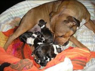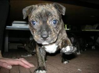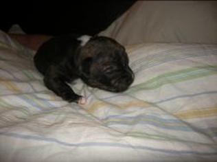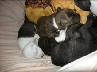 Puppy dossier Breed: Staffordshire Bull Terrier Born: 07-01-2010 Sex: Female Weight: (03 Feb) 1600 grams Color: Black with half white neck ring |